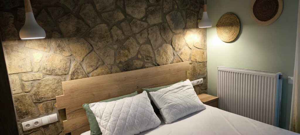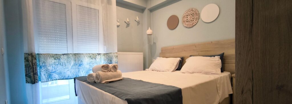 - Κρεβατοκάμαρα με διπλό κρεβάτι (για τους γονείς) με εξαιρετικά όμορφη και οικία διακόσμηση με θετική αύρα.