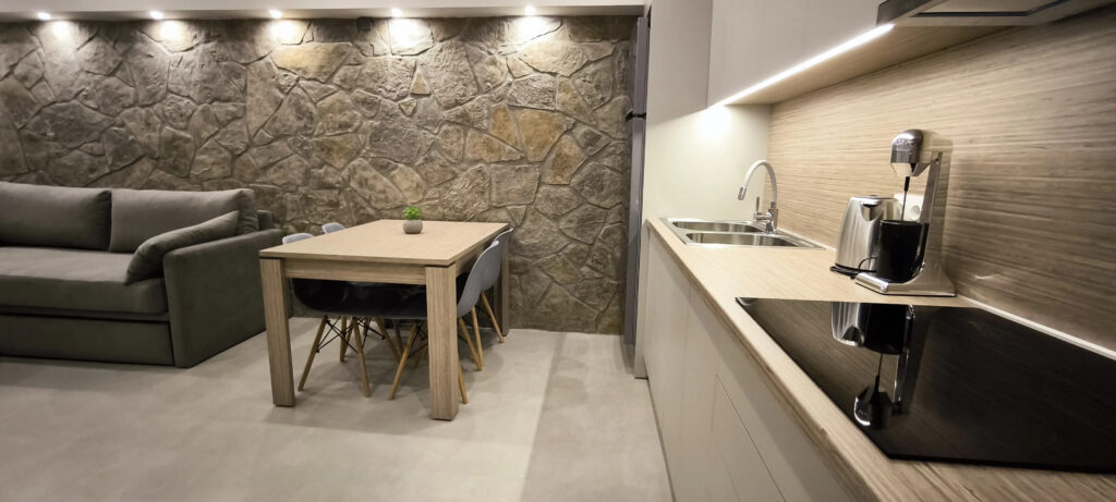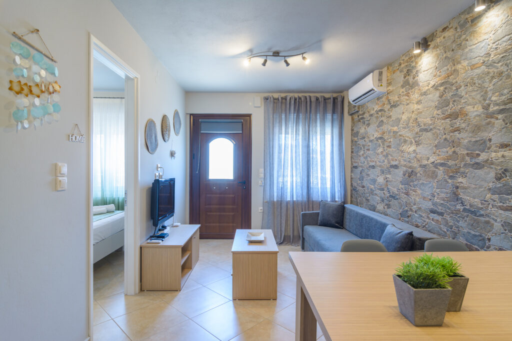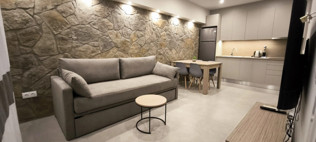 Οκτώ (8) διαμερίσματα των 40 τμ, κατάλληλα για έως 5 επισκέπτες, δίχωρα, άνετα, πλήρως εξοπλισμένα, υψηλής αισθητικής και μοναδικού συνδυασμού του μοντέρνου με το παραδοσιακό για ξέγνοιαστη διαμονή.