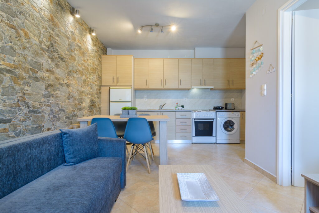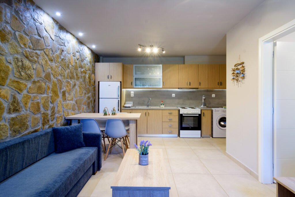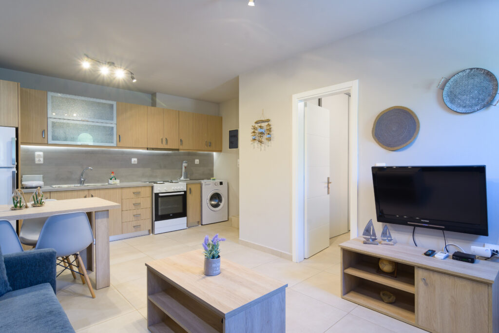 Διαμερίσματα πλήρως εξοπλισμένα με την λογική της μόνιμης διαμονής. Η κουζίνα είναι υπερ-πλήρης και λειτουργική. Στα θετικά για μια οικογένεια είναι και το πλυντήριο ρούχων μαζί με κάθε άλλη άνεση που προσφέρουν.